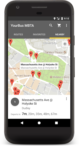 +查找有关您附近MBTA巴士和通勤铁路停靠站的到达和出发信息。