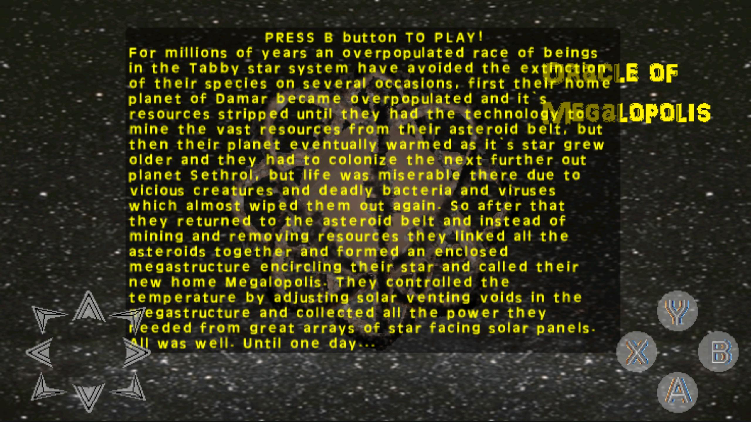 Oracle Of Megalopolis是关于生活在围绕其主持人Tabby建造的巨型结构中的外星种族,这是由于蠕虫的实现而不可避免地灭亡。