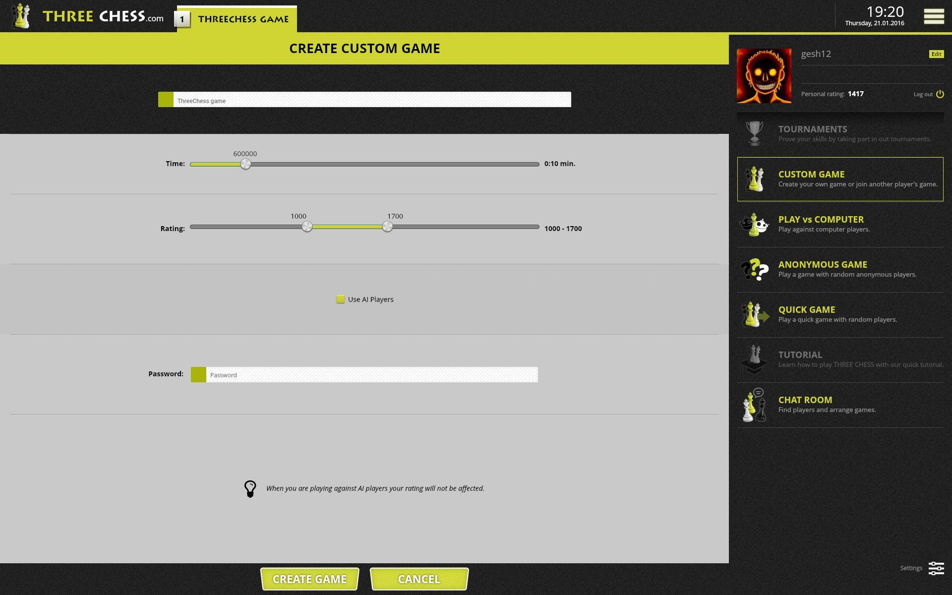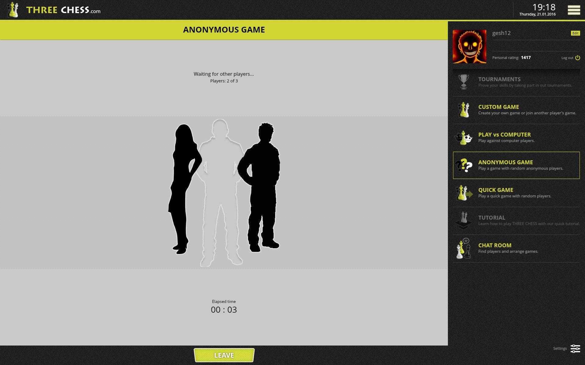 Threechess:为在线或与计算机的三个玩家打三个球员的国际象棋。参加比赛。