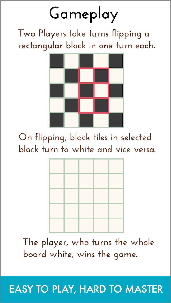 经典2个基于球员的数学策略游戏Turnablock是由数学家JH Conway发明的,1976年在Scientific American的数学游戏专栏中进行了描述。 Turnablock结合了棋盘游戏Othello的风味和NIM的获胜策略。