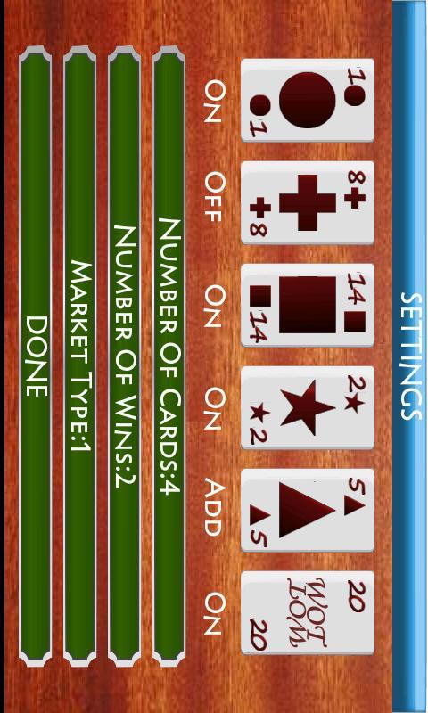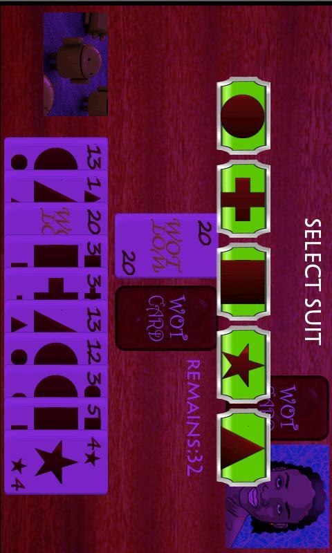 它是Android上流行的WHOT游戏!!!!选择两个,选择三个,一般市场,持有,半牌,最后一张卡,检查。下载并开始玩得开心。