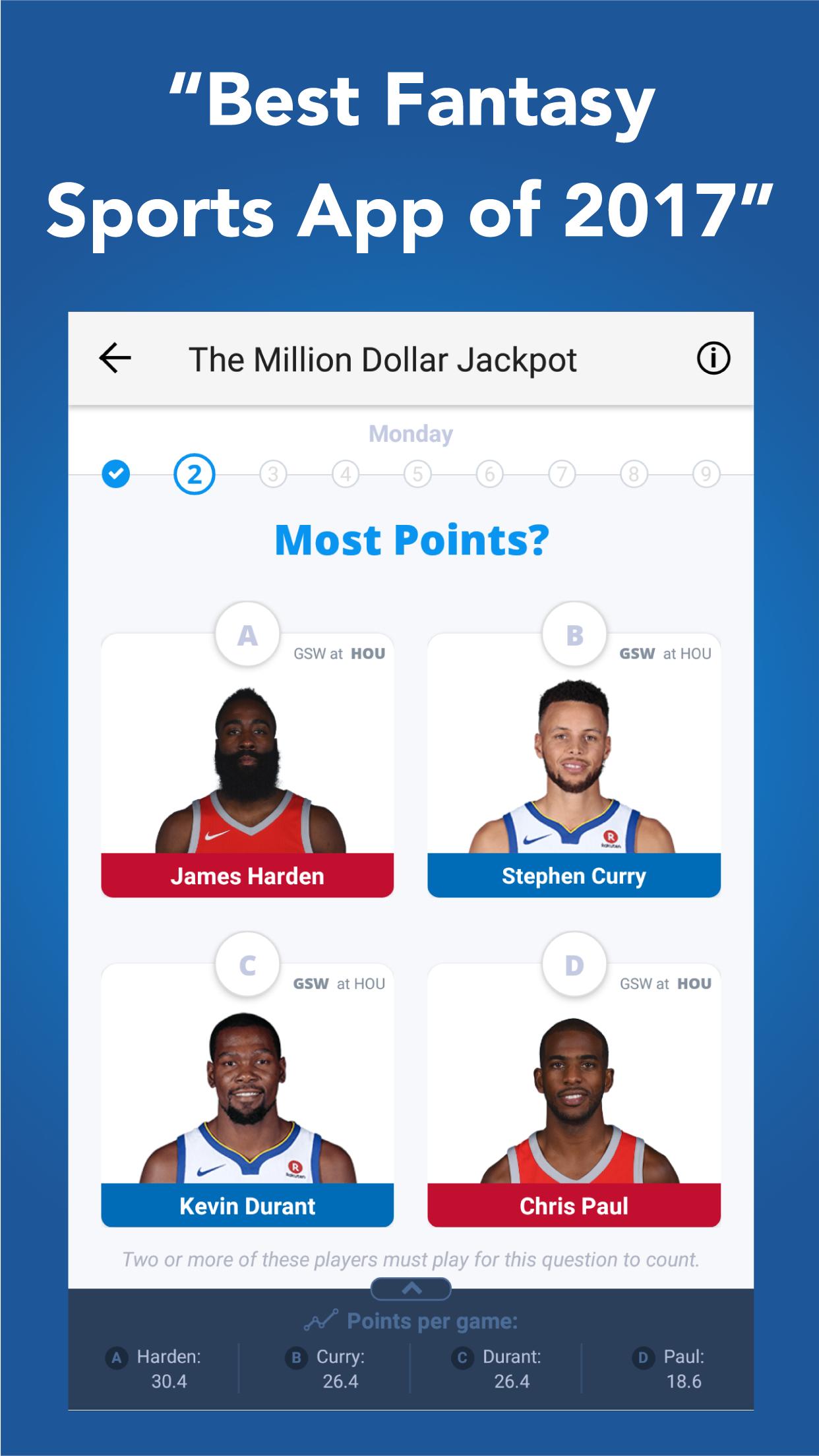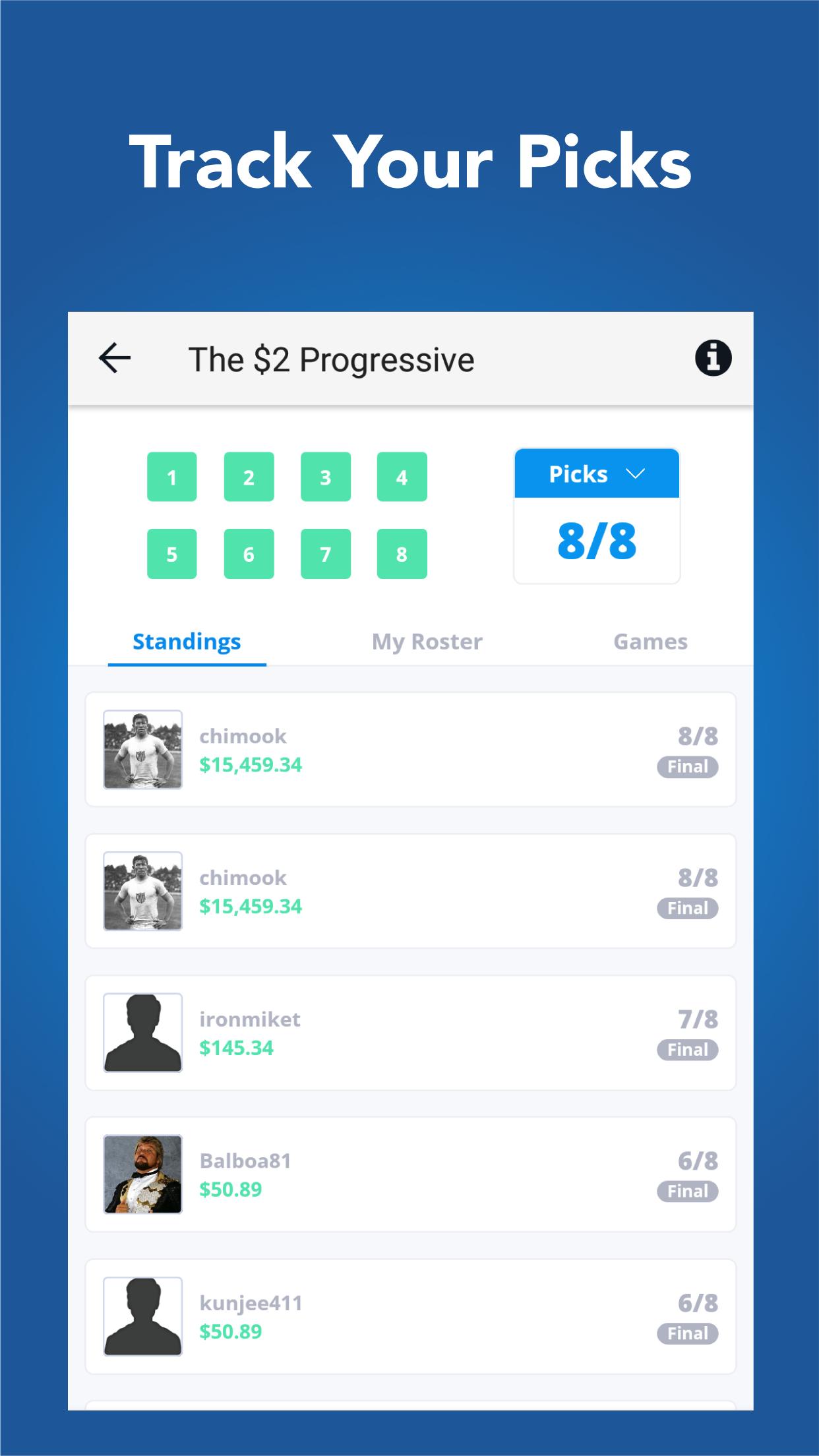 在繁榮時期,您製作了充滿明星的名冊(例如,誰將獲得更多的達陣 - 湯姆·布雷迪(Tom Brady)或亞倫·羅傑斯(Aaron Rodgers)?),您會因承受的風險而獲得回報。今天在免費和有償比賽中參加從足球,籃球,棒球再到網球再到足球比賽的一切。 BOOM參加了所有NFL,NBA,MLB,PGA,NHL,MMA,MLS和EPL Games的比賽 - 甚至在競爭性飲食和電子競技上進行比賽!