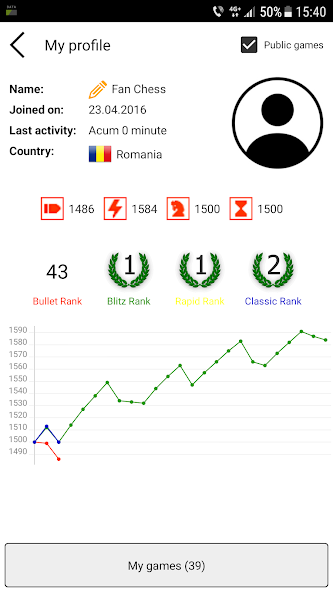 *遊戲 - 與您的朋友或世界各地的其他國際象棋球員或與國際象棋發動機下棋。另外,您可以通過接收國際象棋評級來跟踪進度,並競爭以在排行榜上盡可能高的名字。