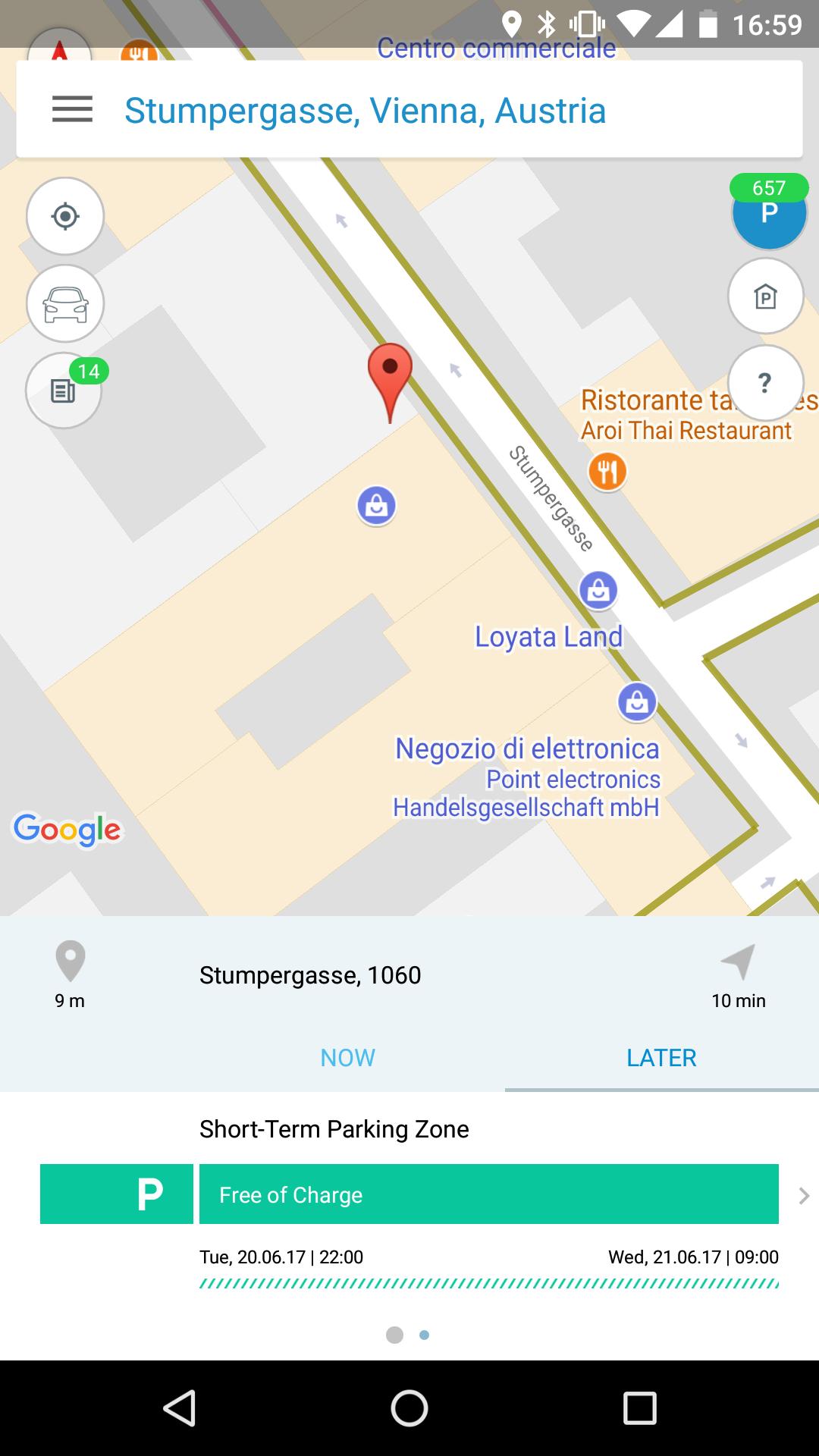 Parkfinder可幫助您在附近找到一個停車位。我們向您展示剛剛可用的停車位 - 實時!可用的停車位以綠色點彈出。這些點的透明度表明停車位的可用性有多大。點越飽和,停車位的可能性就越大。為了提議在您用汽車在城市巡遊時,只需將手機插入移動設備時,請按GPS跟踪功能,然後選擇您所在地區出現的停車位之一。目前,Parkfinder僅在精選城市活動,但很快就會跟隨更多城市。當然,當Parkfinder包括新城市時,我們會盡快通知您。