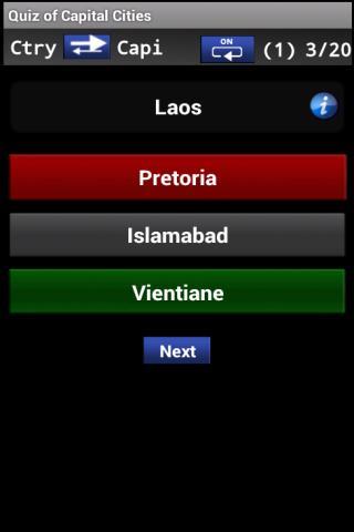 左上方的藍色按鈕單擊,您可以切換測驗(國家和資本)的方向。