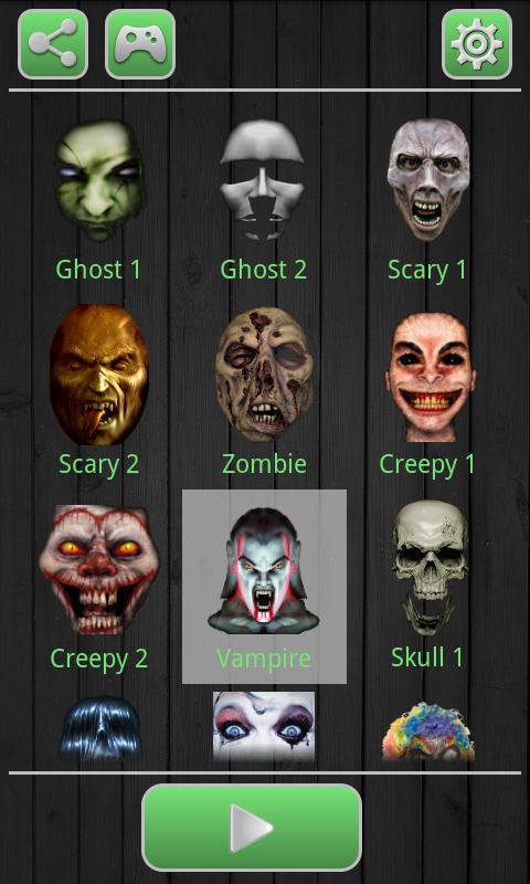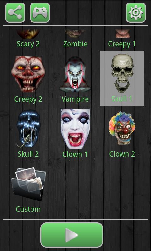 - 多個圖像:幽靈,殭屍,令人毛骨悚然的小丑,吸血鬼,頭骨,可怕的面孔。
