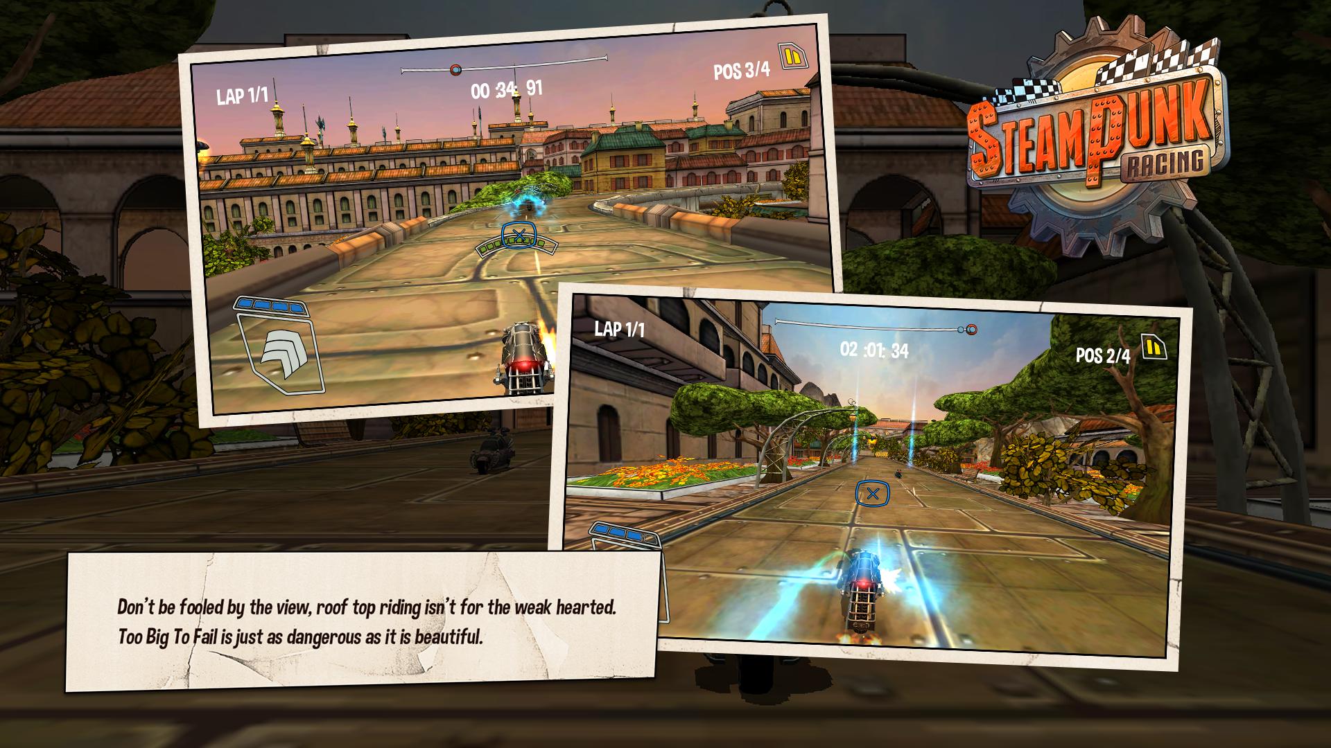 “ Steampunk Racing ”是蒸汽朋克主題,街機,戰鬥賽車遊戲,具有令人興奮,動作,角色和競選活動。