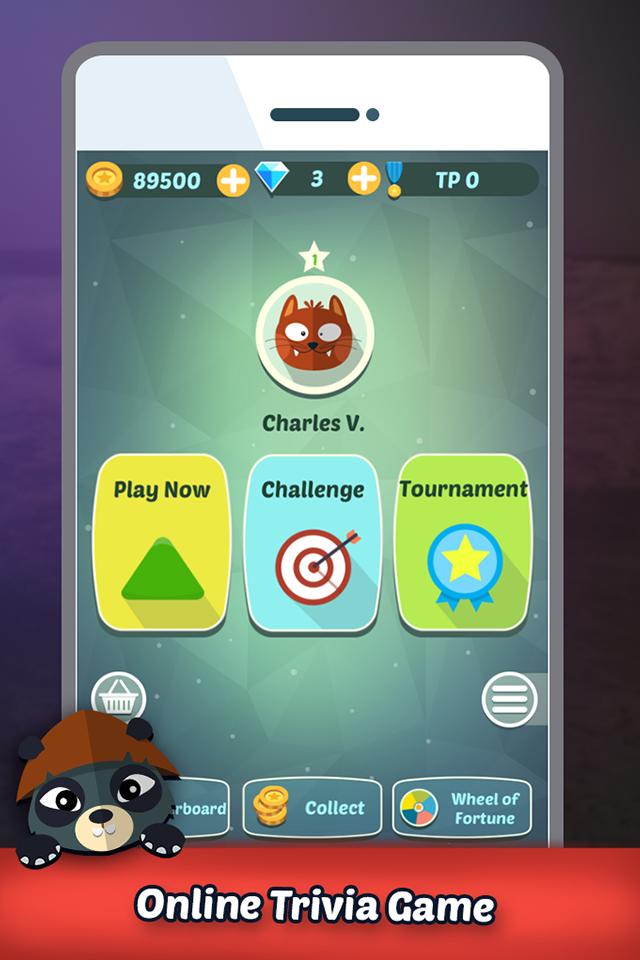 按下播放按鈕以查看所有類別,與它們一起播放以回答隨機問題。在有限的時間內通過最佳正確答案解決測驗。擊敗您的朋友,收集硬幣或鑽石以更快地排名。