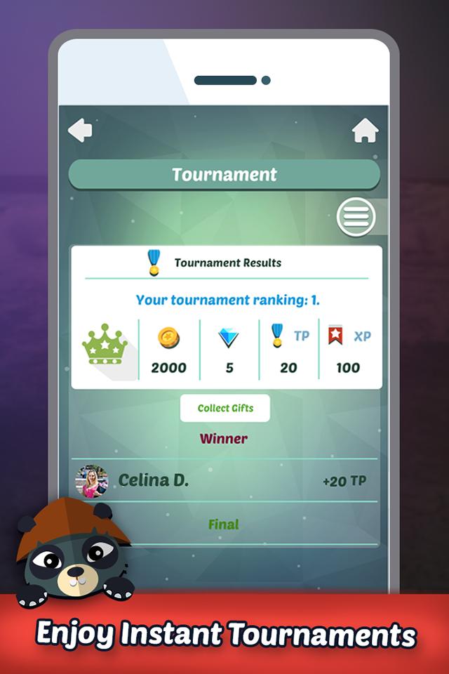 您還可以使用您的Facebook帳戶簽名,並邀請您的朋友猜測和解決測驗。與您的同事或全國各地的隨機選擇的人一起玩任何主題。您可以通過檢查排行榜來查看得分排名,以及其他人的排名。